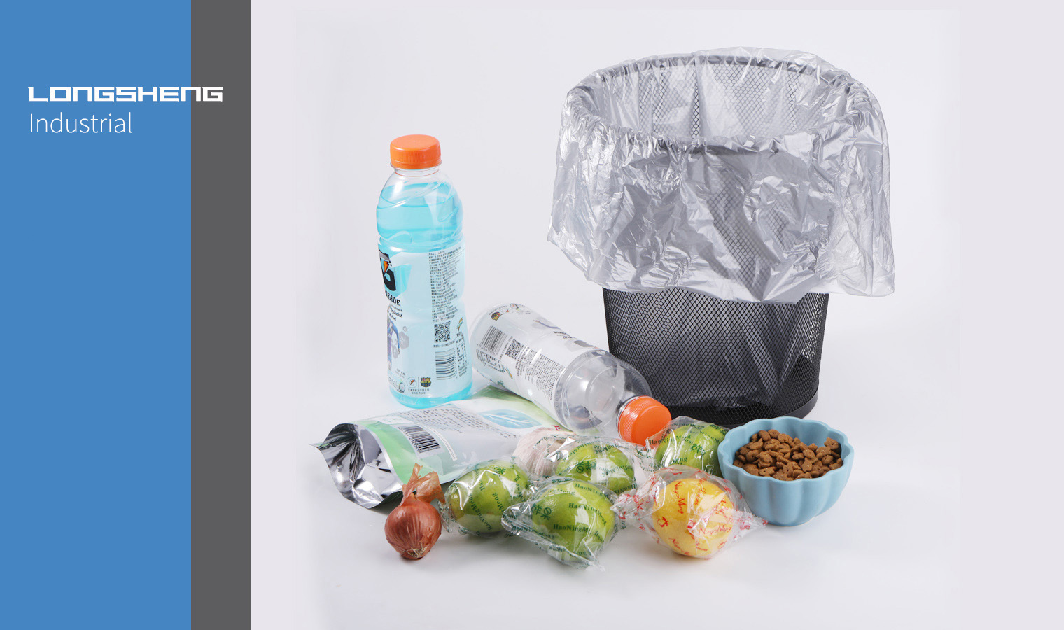 The main production of a new generation of environmental degradation plastic bags, packaging materials and electronic products.